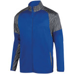 100% polyester sublimated micropoly upper body featuring Breaker print * 100% polyester knit interlock lower body * Hybrid design with micropoly on shoulders, collar, and sleeve for rain and wind resistance combined with knit lower body for warmth * Heat sealed label * Extended zipper garage with storm flap * Cadet collar * Set-in sleeves * Two angled welt pockets * Spandex bound cuff * Open bottom * Machine washable *