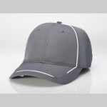 Light-weight moisture wicking performance fabric. Sport-Casual shape with buckram fused front panels. Chorded piping on front panels and visor. Pre-curved PE visor.