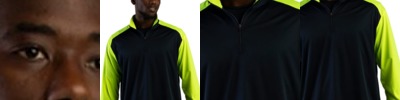 - Contrast bound collar and 3/4 raglan sleeve