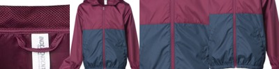 - Contrasting color 1x1 rib-knit collar and cuffs
