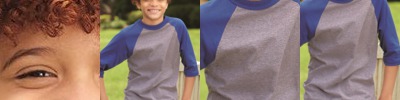 - Contrast-color 1x1 rib collar and raglan sleeves
