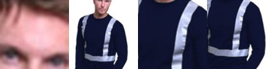 - Two-tone contrast polyester tricot fabric under reflective tape; contrast binding