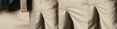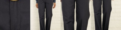 - Two slack-style front pockets, two set-in hip pockets with darts