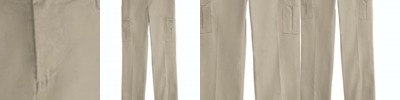 - Two slack-style front pockets and one set-in hip pocket with button closure