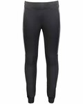 Heavyweight 88% polyester/12% spandex knit * Wicks moisture * Ladies' fit * Tag-free label * Low rise, wide flat waistband for secure fit and comfort * Hidden possession pocket in waistband * Flatlock stitching provides comfort and helps prevent chafing