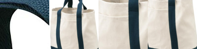 • 100% cotton twill Cotton web handles reinforced with stress-point stitching Dimensions: 15.5"h x 13"w x 7"dNote: Bags not intended for use by children 12 and under. Includes a California Prop 65 and social responsibility hangtag.