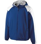 Micron(tm) poly shell, modern and quiet, micro-denier polyester * Athletic heather fleece lining * Woven label * Front zipper * Adjustable hood with eyelets and concealed cord locks on Adult only * Raglan sleeves for maximum mobility * Front zippered pockets * Half-elastic cuffs and bottom * Water-resistant * Fit: Relaxed