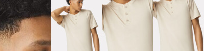 - Three-button placket with dyed-to-match buttons