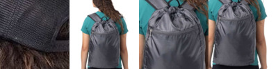 - Self-fabric closure with adjustable D-ring slider and grommet tuck-in strap