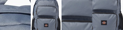 - Front zipper compartment with tablet and phone pockets, pen loops, and key clip