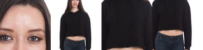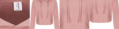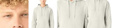 8.3 oz./yd², 80/20 ring-spun cotton/ polyester 100% cotton face Relaxed fit with cropped cut Two-panel double fabric hood Pouch pocket Raw edge cover stitched hem Tear away label