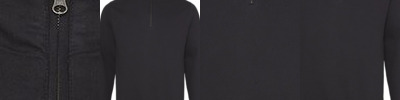 8.3 oz./yd², 80/20 ring-spun cotton/polyester with 100% cotton face Charcoal is 52/48 ring-spun cotton/polyester Twin needle stitching Quarter-length neck zip Metal YKK zipper Tear away label