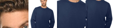 8.25 oz./yd²., 52/48 cotton/polyester Nantucket Fleece (Textured Fabric) Regular fit- true to size Canvas neck tape Double-needle topstitch on all seams Side-seamed Ribbed cuffs and waistband Tear away label