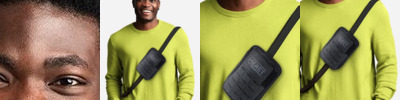 - Self-fabric closure with D-ring slider and tuck-in strap