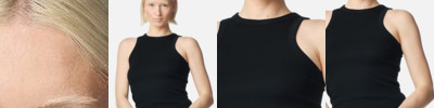 - Ribbed-knit crew neck collar with V-stitching at neckline