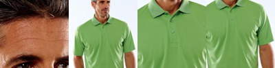 100% polyester mesh piqué • 4.4 oz. • moisture-wicking • UV protection • pill-resistant • fully taped flat rib-knit collar • half-moon patch • 3-button placket with dyed-to-match buttons • double-needle flat-lock stitching at shoulders • armholes • sleeves and bottom hem • 2" side vents • tagless • Sizes: S-XL